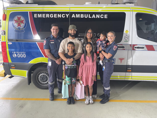 On Tuesday 3 November, joined by his parents and two older siblings at Point Cook ambulance station, Zora reunited with the paramedics who helped deliver him – on the side of Princes Freeway.
