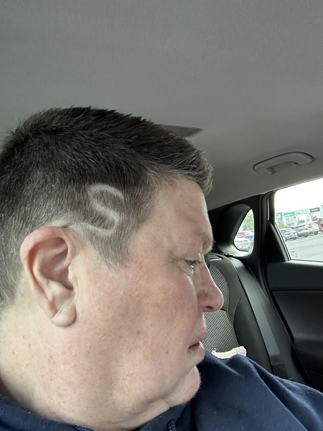 In fact, it was just long enough at the time of my twin granddaughters’ fifth birthday party to have their initials shaved into the sides of my head. Yeah, I was the cool grandma that day.