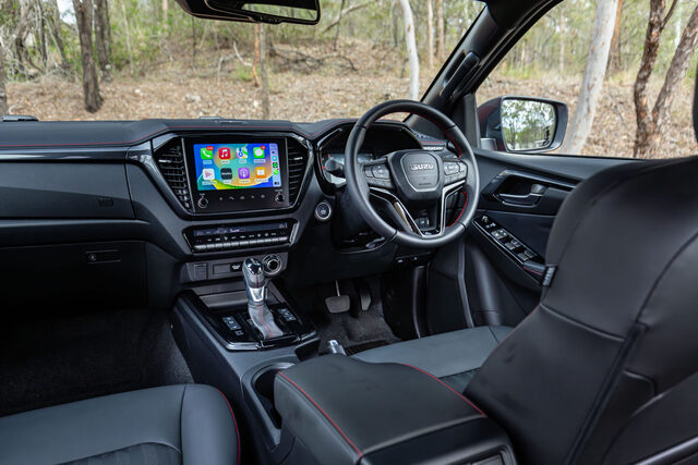 Settling in some of the most comfortable seats in its class, D-Max passengers can have little to complain about. Font-seat padding is supportive and the X-Terrain’s eight-way power adjustment is easy to operate.