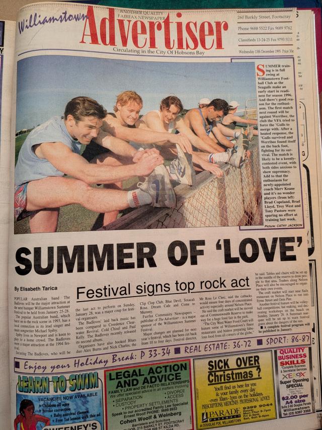 Popular Australian band The Badloves will be the major attraction at the next bumper Williamstown Summer Festival to be held from January 25-28.