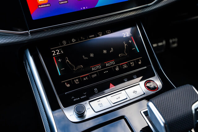 Air quality is taken care of by four-zone climate control air-conditioning, ioniser and two quality perfumes in four intensities. Audi Connect plus dishes up navigation and infotainment, plus security and assistance services. Smartphone interfaces are wireless for Apple CarPlay and Android Auto.