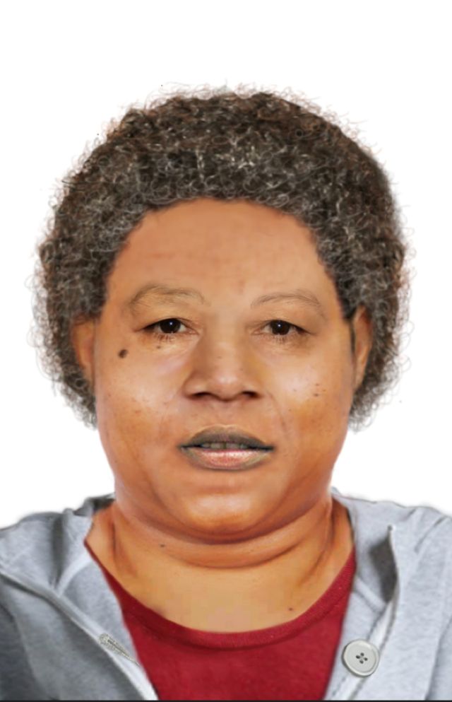The woman is described as being approximately 40-60 years old, around 155 centimetres tall with tan skin and greying brown hair.