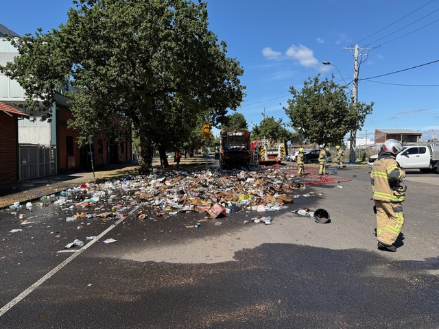 Moreland Street, between Bunbury and Wingfield streets, was closed to traffic while firefighters put out the blaze, which like the recycling truck fire on January 29, is believed to have been started by a battery or piece of electronic waste being incorrectly disposed of.