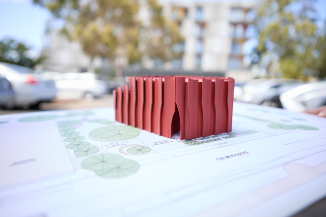This distinctive exterior represents the fusion of Vietnamese culture, the arduous refugee journey by sea, and the iron-rich red soil of Australia.