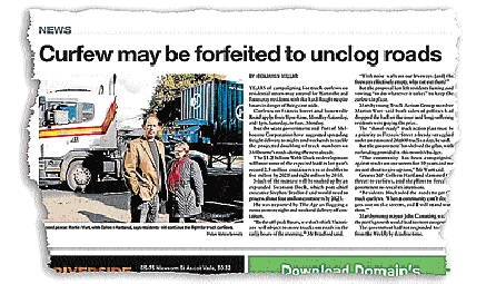 A spokeswoman for Roads Minister Terry Mulder said the government was aware of the impact of truck movements through residential areas. She said $5 million would be spent on the Victorian Freight and Logistics Plan to guide future infrastructure planning and investment.